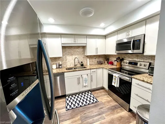 Take advantage of this rare opportunity to own a 2BR/2BA updated turnkey condo at Sunset House on Marco Island Beach. This unit offers a split plan with a newly updated kitchen with white shaker cabinets, granite countertops, and stone backsplash along with new flooring throughout. Enjoy being steps from the shoreline, while being close to shopping, restaurants, and island favorites. Enjoy the beautiful city views from the large sized balcony at this Oceanside location. Sunset House has passed all state mandatory Milestone Inspections and has no current assessments.