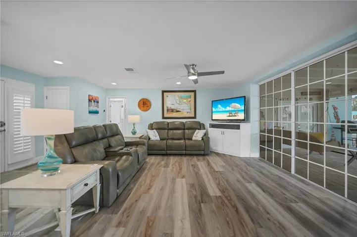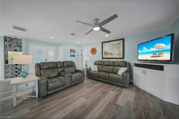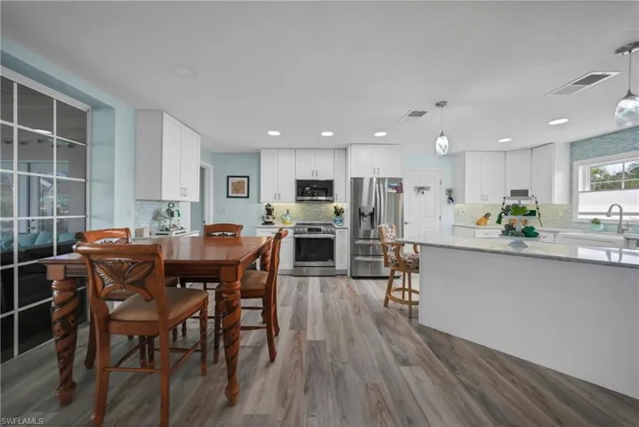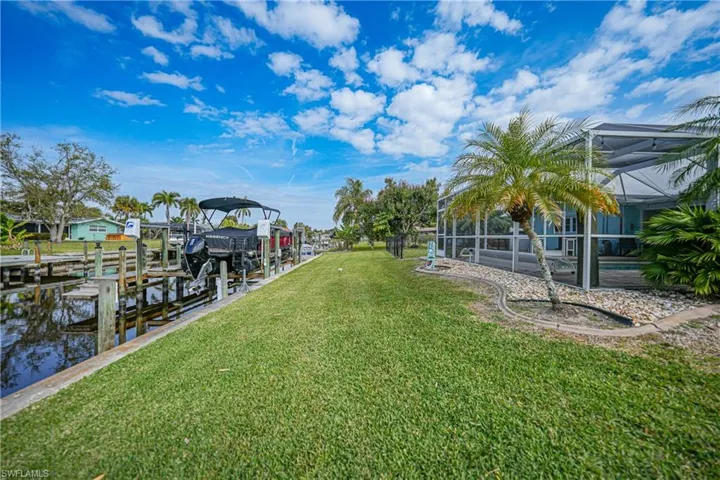 Step inside to discover a beautifully renovated 4 bedroom, 2 bath, DIRECT access POOL home. The updated kitchen featuring sleek quartz countertops, white shaker cabinets, pantry and top-notch LG appliances. The open layout seamlessly flows into the spacious living areas, perfect for entertaining guests or enjoying quiet evenings. Relax and unwind in the heated pool, or take your boat out for a day on the water with convenient DIRECT ACCESS. Dock has 16,000 pd boat lift. The outdoor firepit area provides the ideal spot for cozy gatherings and enjoying breathtaking sunsets. With four bedrooms, there’s plenty of space for the whole family to spread out and enjoy privacy. The master suite offers a tranquil retreat with its own ensuite bathroom and views of the water. This home has been professionally renovated after Ian with documentation. A roof in 2019 and hurricane windows, doors and Kevlar shutters for added peace of mind. Whether you’re seeking a permanent residence or a vacation retreat, this waterfront gem offers the ultimate Florida lifestyle.