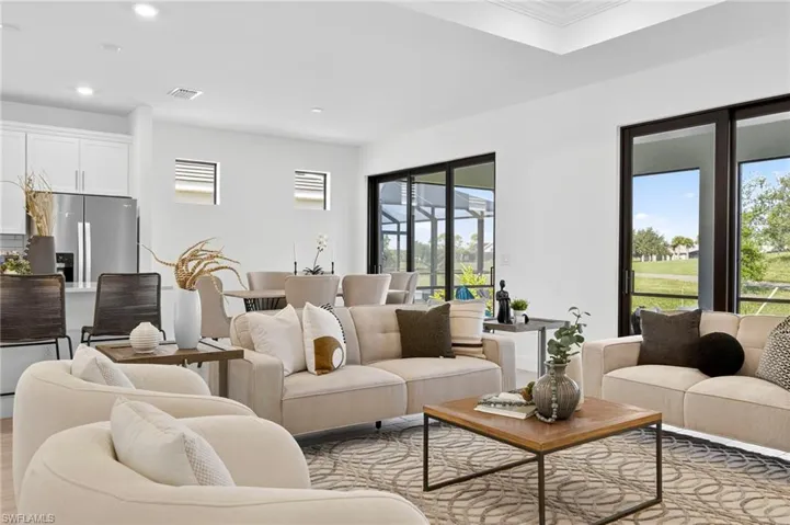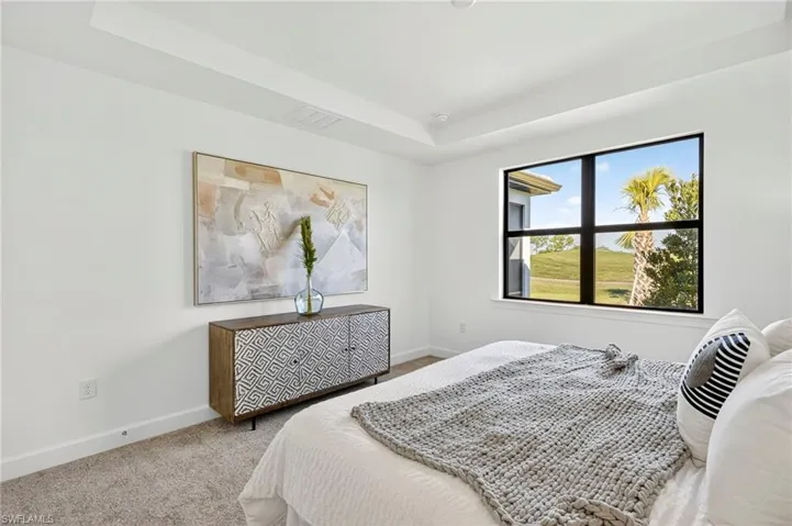 Welcome to this beautifully upgraded single-family home featuring 2 bedrooms, 2 bathrooms, and a versatile den—perfect for a home office or flex space. Thoughtful upgrades throughout include a 4-foot garage extension, extended covered lanai, and a sliding glass door at the gathering room that fills the space with natural light. The open-concept kitchen showcases white cabinets, quartz countertops, and flows seamlessly into the main living area, enhanced by 12×24 tile flooring, 5″ baseboards, and elegant tray ceilings in both the gathering room and owner’s suite. The owner’s bath offers a spa-like retreat with a fully tiled shower to the ceiling, heavy glass shower door, and built-in shower niche. Additional highlights include a full laundry room upgrade with upper cabinets and countertops, plush carpet in the bedrooms, 8′ interior doors throughout, and a professionally finished epoxy garage floor. This home offers both style and function in every detail. Nestled within the gated, 1,500-acre master-planned community of River Hall Country Club, residents enjoy a wealth of resort-style amenities. The exclusive Bunker Bar offers a full-service, open-air experience overlooking a lagoon-style pool with private cabanas. The 14,000 sq. ft. clubhouse features a state-of-the-art fitness center, aerobics room, game room, arts & crafts space, and more. Sports enthusiasts can take advantage of two bocce courts, two Har-Tru tennis courts, and four pickleball courts, while an on-site Activities Director ensures a vibrant community atmosphere. Golf lovers will appreciate the Davis Love III-designed semi-private 18-hole course, bundled with homeownership, along with top-tier practice facilities. The River Hall Country Club clubhouse also features the Caloosa Grille, a bar, a golf shop, and locker rooms with personal storage. Photos are from a completed home of the same model. Options for this home may vary.
