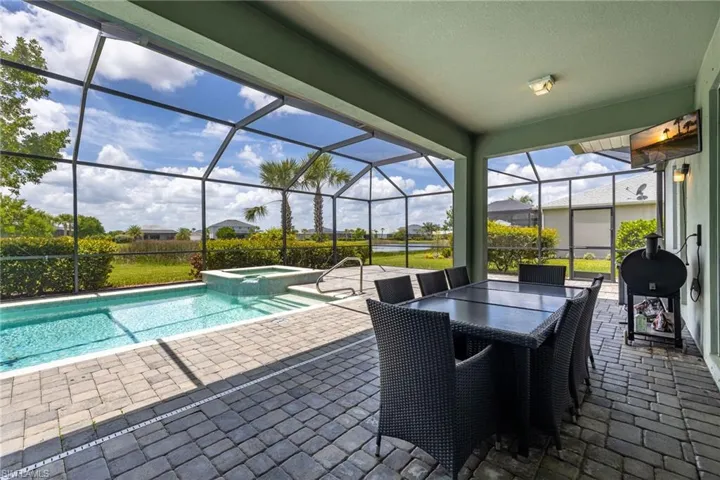 Experience the perfect blend of luxury, comfort, and sustainable living in this stunning 5 bedroom, 4.5 bathroom home located in the heart of Babcock Ranch. Featuring a stone-accented exterior and a spacious three-car garage, this home makes a lasting first impression and offers exceptional curb appeal. Inside, this thoughtfully designed two-story home features soaring ceilings, an abundance of natural light, and high-end designer finishes throughout. The gourmet kitchen is a chef’s dream, complete with granite countertops, stainless steel appliances, a large center island, and custom cabinetry. The natural gas cooktop offers precise temperature control, making it a chef’s favorite for preparing delicious meals with ease. Step into your private backyard oasis and unwind in the sparkling heated pool and spa, surrounded by a screened lanai and serene outdoor living space – perfect for relaxing evenings and weekend gatherings. The primary suite offers a peaceful retreat, featuring a spacious en-suite bathroom with dual vanities, a walk-in shower, and his/hers large walk-in closets. Additional highlights include a versatile flex space perfect for a home theatre, home office, and energy-efficient features consistent with Babcock Ranch’s commitment to sustainability. Enjoy access to the community’s unmatched amenities, including resort-style pools, fitness centers, miles of walking and biking trails, community parks, restaurants, and a vibrant Founder’s Square area. All of your everyday essentials are just a short golf cart ride away! Including Publix, HomeGoods, Marshalls, Ulta Beauty, Ace Hardware, Five Below, and more! This is more than a home, it’s a lifestyle! Schedule your private tour today and discover why Babcock Ranch is one of Southwest Florida’s most desirable communities.