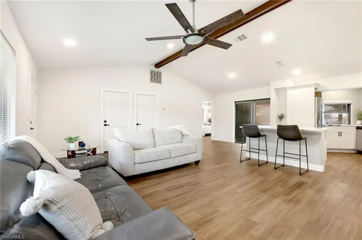 This rare, fully remodeled, 3 bed / 2 bath home offers direct Gulf access with no HOA fees! The spacious open floor plan is perfect for entertaining family and friends. Relax and unwind on the screened-in lanai, take a refreshing dip in the pool, or barbeque on the deck while taking in the peaceful views of the open canal. Updates include new kitchen cabinets, stainless steel appliances, marble countertops, new bathrooms with marble tile and porcelain floors throughout, impact-resistant windows, sliders, and doors, as well as a new roof (2023). The home also features a 2-car garage with a freshly paved driveway (2024), a newly resurfaced pool, and a new boat lift (28-30’ boat on the lift max size) and dock (2023). Take a short trip through Mullock Creek that leads to the Gulf of Mexico with NO BRIDGES! This home is nestled in a quiet & friendly neighborhood that is conveniently located near SWFL International Airport, Florida Gulf Coast University, Lakes Park, Six Mile Cypress Slough, Coconut Point Mall, Gulf Coast Town Center, and the white-sandy beaches of SWFL. Whether you’re looking for a lucrative investment (Airbnb) or the ultimate boater home, this property delivers the perfect blend of comfort and prime location. 15 minutes to open waters, launch is available from Mullock Creek.