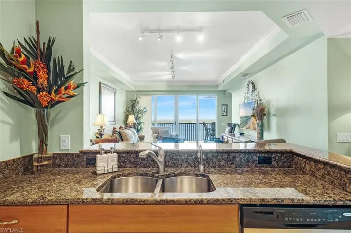 Step off of your private elevator to experience luxury high rise living with unobstructed Sunset views of the Caloosahatchee River from every room. Perched on the 21st floor, this lovely 3/2 turnkey unit boasts open concept living at its finest. The kitchen is appointed with wood cabinetry, stainless steel appliances, granite countertops, and a built-in pantry, opening seamlessly to the dining and living areas. Soaring ceilings throughout with crown molding, tile flooring & carpeting in the bedrooms. The primary suite showcases river views, lanai access, walk in shower, separate soaking tub, dual sinks and a walk-in closet. The 2nd guest bedroom functions as a 2nd primary suite with access to the guest bathroom with dual vanities, walk-in closet and sweeping views of the River and Cape Coral Bridge. Enter through French doors to the 3rd bedroom which also has direct access to the lanai. A whole home water filter & RO system was recently installed along with a brand new HWH. Enjoy a lifestyle of resort style amenities: a riverfront heated pool and spa, fitness center, conference rooms, library, party room, dog park, tennis courts, kayak launch, gas grills, & climate-controlled storage, A lively social committee hosts year-round events, while rotating food trucks bring dining to your doorstep twice a week. The free seasonal trolley makes access to the River District effortless—just minutes away you’ll find dining, shopping, live theaters, festivals, art walks, and the weekly farmers’ market. This unit is turnkey and has 1 assigned garaged parking space. Whether you are looking for a seasonal getaway, or a full time Riverfront home, this piece of paradise is waiting for you…..You have been formally invited to partake in a lifestyle like no other …