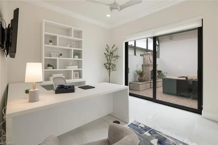 Imagine stepping through your front door and being greeted by the glow of the afternoon sun bouncing off the shimmering lake in the distance. As you take in the view, the long water vista stretches out before you, and it’s impossible not to imagine yourself unwinding on the lanai, watching the sunset paint the sky in vivid oranges and pinks. The prime western exposure promises this scene every evening, an ideal end to every day. Moving deeper into the home, you find yourself drawn to the interior courtyard, a sanctuary of calm, where the gentle trickle of a water fountain blends with the crackling warmth of a built-in fireplace. It’s a space designed for peaceful mornings with a coffee or cozy evenings with close friends. The impact glass windows and doors around you provide security and clarity, connecting you effortlessly to the beauty of your surroundings. The great room, the heart of the home, features 10-foot sliders opening to the courtyard as well as the outdoor living spaces and pool deck seamlessly merging indoor luxury with outdoor serenity. Throughout this recently renovated home, the details shine. Oversized porcelain tile flooring stretches across every room reflecting the natural light and adding an airy, sophisticated feel. In the kitchen, the modern appliances gleam, begging to be used for gourmet meals or casual brunches. With sleek quartzite updates and timeless design choices, this space is where memories will be made. Additional features include a recently replaced HVAC, a whole-house Kinetico water filtration and softener and more. In the award-winning community of Mediterra featuring two Tom Fazio championship golf courses, pickleball, tennis, state-of-the-art fitness and a private beach club. Enjoy your toes in the sand and golden sunsets at Mediterra’s fully renovated private beach club along the Gulf of Mexico! Imagine arriving to have your car valet parked, and lounge chairs and umbrellas waiting for your arrival or set up upon your request. With 10,000 square feet of space, the upper level offers indoor and al fresco dining, a full bar, swimming pool along with lockers and dressing areas for changing. Spend the day and enjoy dinner while watching the sunset in the distance. Every inch of this home in the prestigious Mediterra community is designed for comfort, elegance and joy. As you walk back outside, the sun begins to set, casting golden rays across the water. You can already picture the life you’ll live here, one where every day ends with a front-row seat to nature’s best show. This is more than just a home, it’s an invitation to live a life of luxury, surrounded by beauty, comfort and unforgettable moments.16725 Cabreo Drive is waiting for you to make it yours.