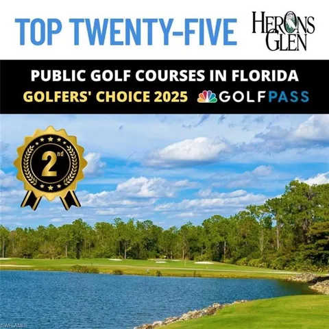 This beautifully appointed Sandpiper floor plan home in Herons Glen Country Club offers an exceptional combination of privacy, convenience, and move-in readiness that’s sure to impress the most discerning buyer. Backing to a natural preserve, the home provides a serene setting where you can enjoy peaceful views from your full-width lanai, while being centrally located within the community for easy access to both the clubhouse as well as the secondary sports area featuring the fitness center and pickleball courts. The split floor plan design maximizes privacy, with the great room, main guest room, and master bedroom each opening to the lanai through their own sliding doors, embracing the indoor-outdoor lifestyle that makes Florida living so special. Inside you’ll find porcelain plank flooring throughout the main living areas complemented by carpet and hardwood in the bedrooms. The kitchen showcases white cabinets, natural stone countertops, tile backsplash, under-counter lighting, and an impressive lineup of appliances including a newer induction cooktop range and microwave, nearly new refrigerator, and brand new dishwasher and garbage disposal. The dining room features attractive built-in buffet cabinetry with granite counters and electrical outlets, perfect for entertaining or enjoying quiet meals with family. The master suite has been thoughtfully upgraded with built in closet organization and a completely renovated bathroom boasting extensive counter space, abundant drawer storage, and a spacious walk-in shower designed with no transition and no door to clean. Additional highlights include a laundry area with front-load washer and dryer and a utility sink, hurricane screens throughout for storm protection and peace of mind, a new roof in 2020, a garage door and opener from 2022, fresh landscaping installed in 2024, and air conditioning just over a year old. Herons Glen strikes a wonderful balance between staying active and finding time to relax, whether that means teeing off in the morning, meeting friends for lunch at the clubhouse, or simply enjoying the peaceful Florida sunshine, and this home captures that same spirit with a welcoming energy and comfortable spaces that feel less like a house and more like a true home where you can settle in and enjoy the Florida resort lifestyle you’ve been dreaming of!