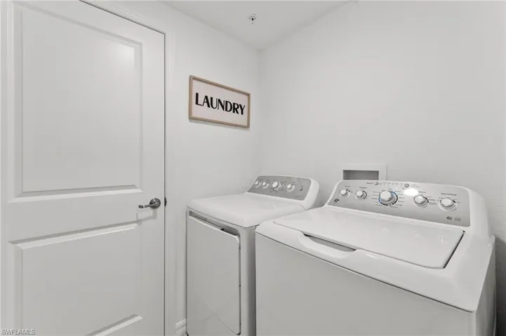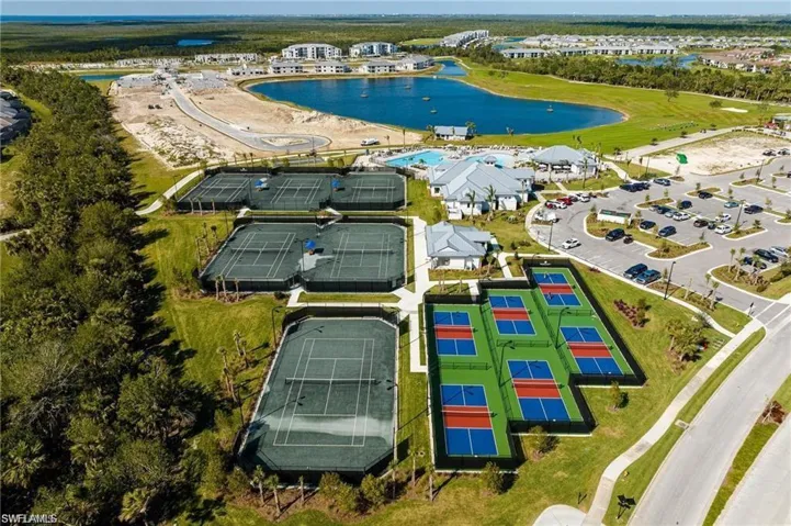 This 2023 built home features hurricane impact windows and doors throughout, eliminating the need for hurricane shutters. Night light wall plates provide security and ambiance. Through the sliding glass doors, the screened lanai beckons with its upgraded no-see-um mesh screening, offering uninterrupted views of the serene lake and lush golf course greens. The front entry also features a screened porch, allowing for pleasant tropical cross breezes.