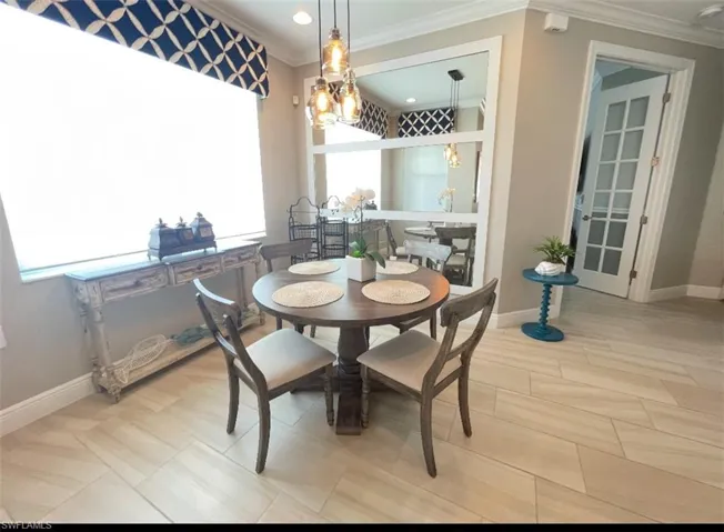 FURNISHED WITH PRIVATE POOL! at PELICAN PRESERVE. This lovely attached villa with a 2 car garage has a beautiful lanai complete with a lovely private pool of your own to enjoy while entertaining or just relaxing privately with family and friends! This home was a former decorated model and offers many beautiful upgrades! Custom window treatments, beautiful tile flooring throughout the home, crown molding, mirrored wall in the kitchen dining area, French doors lead to a private office/ den. Located in one of the best 55+ communities in the country, Pelican Preserve offers an active vibrant lifestyle located in a NO FLOOD ZONE AREA close to shopping, dining, Jet Blue Park, and downtown. AVAILABLE JUNE, JULY, AUGUST, SEPTEMBER, OCTOBER, for $3000 per month. NOVEMBER $4000, DECEMBER 25 and APRIL 26 $5500 per month. NOT AVAILABLE JAN-MARCH.