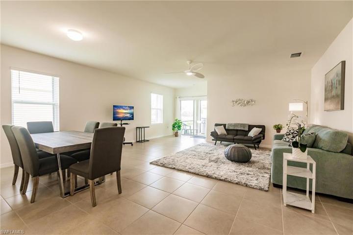 Experience the coziness of home enveloped in the secure embrace of Entrada’s gated community! Revel in the ease of sidewalks, underground wiring, city utilities, and outstanding amenities—all at an impressively affordable HOA fee with no CDD. The resident center boasts resort-style features, such as a lagoon-style pool with a lap lane, playground, splash park, tot lot, tennis, bocce, and pickleball courts, a cutting-edge fitness center, and a captivating activity room. This upgraded model is thoughtfully designed with rain gutters, a new bathroom vanity, accordion shutters, and screened entries at both the front and rear. It also features a ring doorbell, a new 2023 roof with a transferable warranty, back security cameras, and auto motion lights.