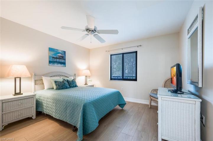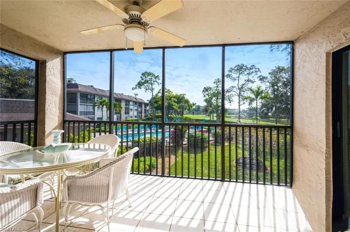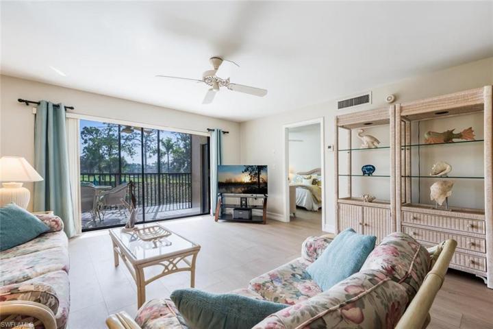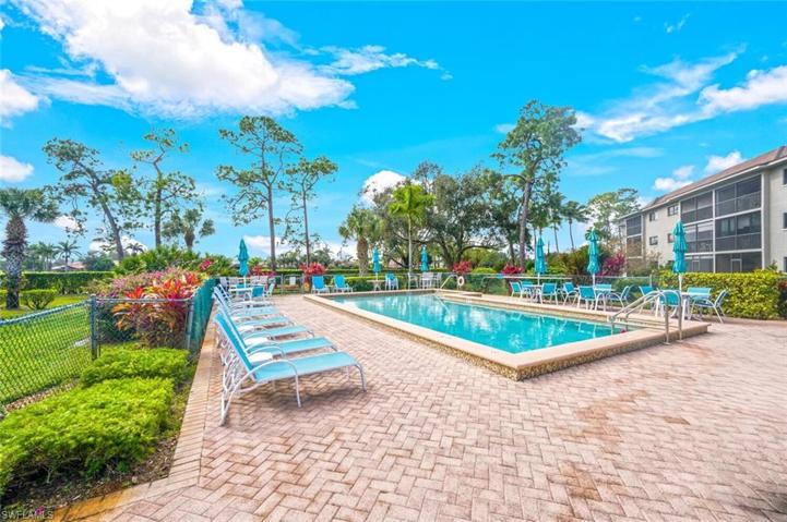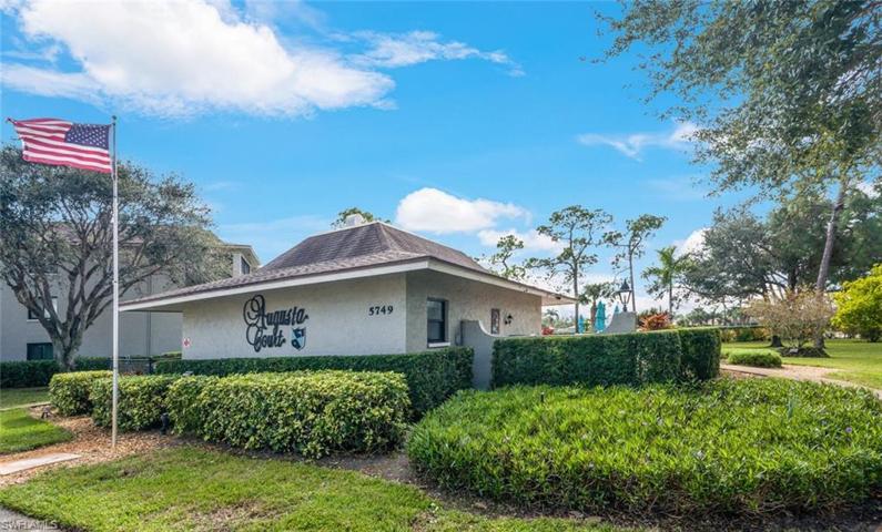 Rarely available Turnkey furnished 3 bed, 2 bath end unit condo with a garage, just minutes away from the sun-drenched Gulf beaches and charming downtown Olde Naples. Could make a fantastic seasonal rental! Natural light fills this condo, thanks to the extra windows that only end units enjoy. Experience classical elegance combined with the warmth of updated wood-style luxury vinyl flooring throughout the living spaces. The screened lanai is a perfect spot to enjoy the beautiful Florida weather, offering views of the sparkling pool, serene lake, and the lush greenery of the golf course. The owner suite boasts an updated bath and walk-in closet with custom built-ins. Additional features include generous-sized guest rooms and a spacious laundry room with a sink. Augusta Court amenities include a community pool and a bocce court, ensuring plenty of options for relaxation and recreation. Don’t miss the opportunity to make this your home – a perfect blend of style, comfort, and a prime location that captures the essence of Florida living.