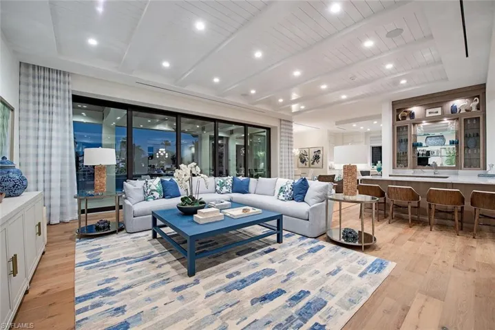 Incredible opportunity to purchase this custom residence fashioned by a team with impeccable credentials. Drawn by Stofft Cooney Architects, crafted by A. Vernon Allen Builders, Inc. and finely appointed by Lisa Kahn Designs, this property offers a forward-thinking lifestyle with great water views. 6 bedrooms, inclusive of a true Guest Casita, 7 full baths, 2 half baths, and a wonderful bonus media space with wet bar on the second level, 4 car garage and a spectacular outdoor covered living area with screens/shutters. Very well thought through pool and deck spaces with integrated spa that leads down to the beautiful waterway and concrete floating dock. A touch more contemporary on the style and finish, while maintaining warmth and a connection to the coast, this home will not disappoint. Immediate Port Royal membership eligibility to take advantage of the spectacular new club when complete!