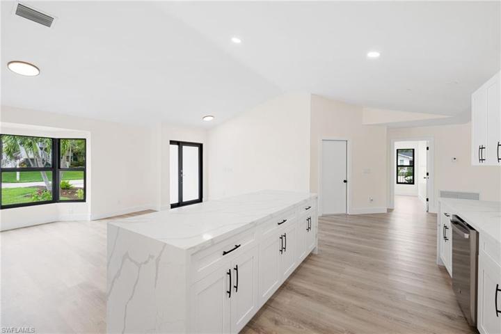 This Spacious 2,000SF+ 3 Bedroom, Two and a Half Bathroom Home features all New Flooring, Chef’s Kitchen, and Bathrooms. Quality finishes and craftsmanship throughout. Outside you will find a large covered area perfect for enjoying the Florida Lifestyle. Cool off from the warm weather in the Large Pool, featuring a spa and water feature. Just steps away you have your large dock and can hop on your boat – just a short trip through Mullock Creek leads you to the open waters of the Gulf of Mexico, and NO BRIDGES! Enjoy this private and friendly neighborhood with No HOA Fees. Benefit from lower Insurance Cost thanks to the new Impact Windows, Sliders and Doors as well as the Roof installed in 2020. The Seawall and Boat Lift is also newer and installed in 2023. Conveniently situated with access to Southwest Florida International Airport, Florida Gulf Coast University, Lakes Park, Six Mile Cypress Slough, Coconut Point Mall, Gulf Coast Town Center, and our infamous White-sand Beaches. *Property comes with a One Year Home Warranty and Professional Cleaning at closing!