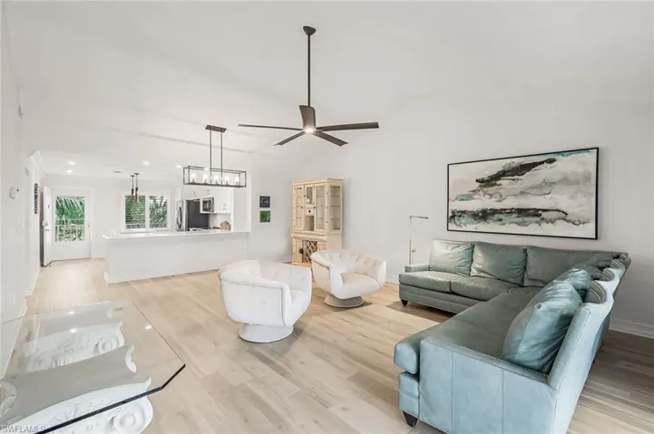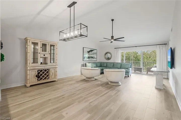 LOOK NO FURTHER! This is a coveted extra-wide (+100 sq. ft.) with volume ceiling unit. This condo has been meticulously remastered. The kitchen has been opened up featuring a center island & new pantry with pull-out drawers. The bar area is counter height offering lots of workspace or room for entertainment. Soft-close cabinetry & quartz complete the kitchen transformation. Laminate plank was installed throughout replacing any carpeting. The master bath features new vanity & new shower with seamless glass enclosure. The master closet has been fully outfitted with organizational storage shelving, drawers & rods. Did I mention the Plantation Shutters? Along with the social club house with 2 pools, docks may be available for sale or to rent. Naples Sandpiper Bay Club offers an incomparable location for the price. Just minutes from 5th Avenue So. gourmet dining & boutique shopping with the Gulf of Mexico just beyond. World-class pickleball can be found at The Naples Pickleball Center (home of the US Pickleball Open) along with the Naples Botanical Garden are just around the corner. …and the Sunsets are Free!