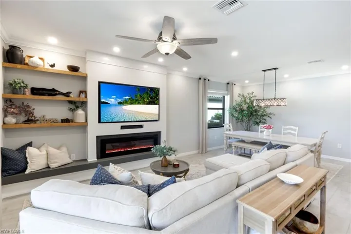 Step inside to an open-concept floor plan designed for both everyday living and entertaining, featuring a spacious living area enhanced by a custom-built fireplace and elegant built-in shelving. The home is thoughtfully upgraded throughout, including custom closets for optimal organization and professionally sealed flooring for a polished, move-in-ready finish.