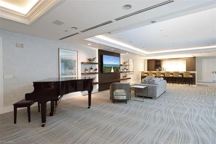 Pricing is for a long-term annual. See pricing below for less months. This is the Ultimate condominium to choose for your warm winter get-a-way. Professionally designed by Juan Montoya, an international interior designer, this beautiful, 9th floor, southwest corner residence enjoys stunning views of the Gulf of Mexico! The Remington is one of the most desirable buildings in Bay Colony, wonderfully located between the prestigious Ritz-Carlton Hotel and the private Bay Colony Beach Club. Residents in this building have unique & private access to the Ritz-Carlton amenities including pools, spa and even room service! Bay Colony Beach Club has tennis courts, beach club with fine and casual dining in the newly renovated and all new facility! This residence has been beautifully renovated, and designed, using only the finest materials, while giving a contemporary, crisp feel. This residence has an open floor-plan, offering 3410 sq. ft. of interior space, open living area, family / media room off the kitchen area offering large screen TV, comfortable L-shaped leather couch, lovely artwork with access to the east lanai with Lounge chairs, and a lovely sunset view. Private dining room and bar area, 3 bedroom suites, 3.5 baths, private elevator, a spacious east lanai, and a large 700′ screened lanai /balcony overlooking the aquamarine blue waters of the Gulf, and white, sandy beach. Every room has a beautiful view! The Master suite looks directly onto the beach with sliding glass doors to the lanai. The two guest suites have private baths, have access to the screened lanai looking east. The Remington amenities include a beautifully remodeled lobby, pool area, outdoor kitchen & grill, and private boardwalk to the beach. Enjoy three separate dining clubs, beach side service with umbrellas, chairs, towels, as well as the 2 Tennis clubs, nature trails, and biking paths. A secure gated community located close to many upscale shops, fine restaurants, movie theatres, and Artis-Naples Performing Arts Center, makes this the ideal location to enjoy Naples.