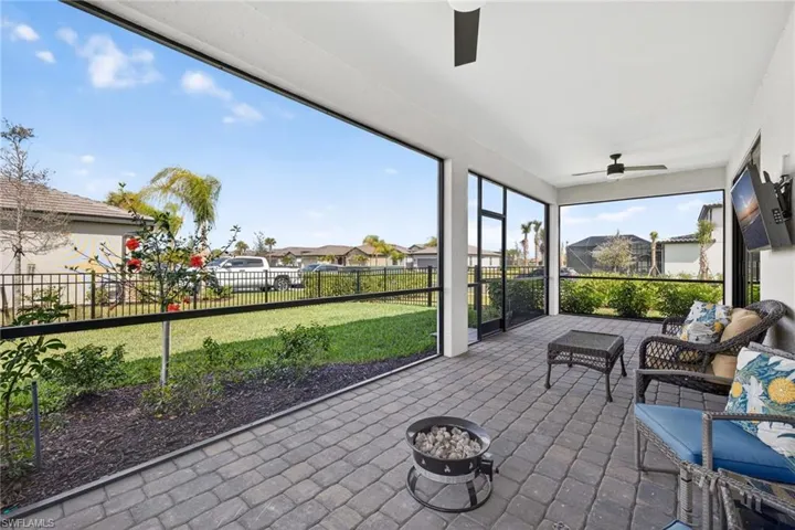 Welcome to the highly sought-after Contour model by Pulte, offering modern design, quality construction, and exceptional upgrades throughout! This beautifully maintained residence features 2 bedrooms plus a den, 2 full baths, a 2-car garage, and a nearly 60-foot-long driveway. Soaring 10-foot ceilings and upgraded 8-foot doors enhance the open, airy feel. The den is enclosed with elegant French glass doors, making it ideal for a home office or flex space. Enjoy peace of mind with impact windows and doors, an impact glass front door, a serviced A/C unit, and the home is located in a non-flood zone. As an end lot situated home, the property offers a larger lot with the extended lanai and fully fenced yard create the perfect outdoor retreat, complemented by desirable western rear exposure for stunning sunset views. Interior upgrades include upgraded cabinetry, quartz countertops, upgraded kitchen sink and faucet, upgraded backsplash, window treatments, whole-home interior paint and an epoxied garage floor. Residents enjoy access to two amenity centers, including West Village, featuring a resort-style pool, yoga studio, café, state-of-the-art fitness center, restaurant, bar and craft lounge, indoor basketball courts, indoor and outdoor pickleball, tennis courts, bocce ball, playground, and fenced dog park. Conveniently located just outside the community is The Shoppes at Verdana Village, offering a brand-new Publix,The UPS Store, Dunkin’, dining, and more.