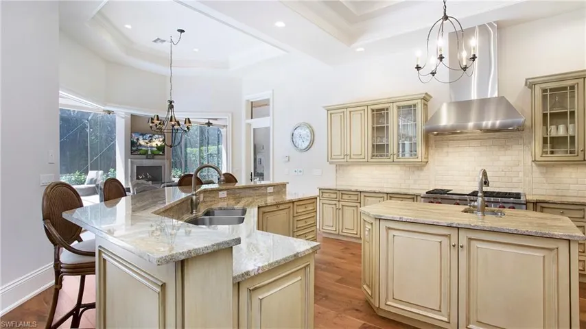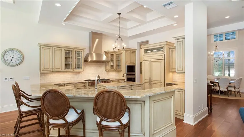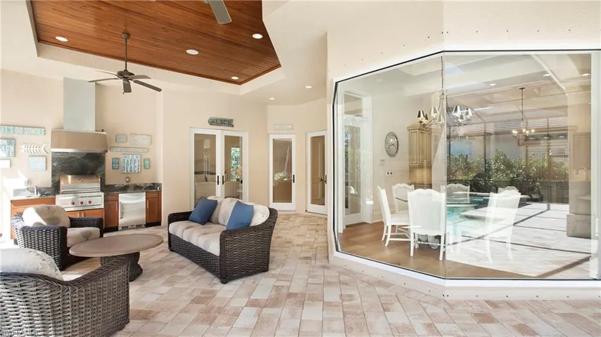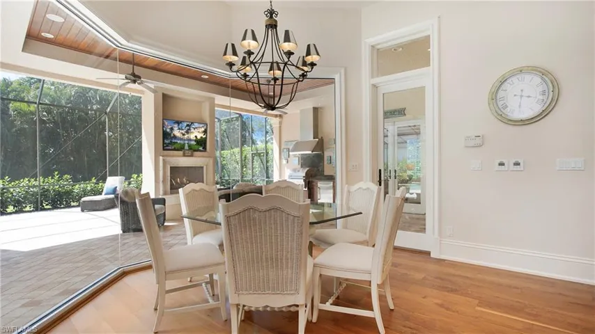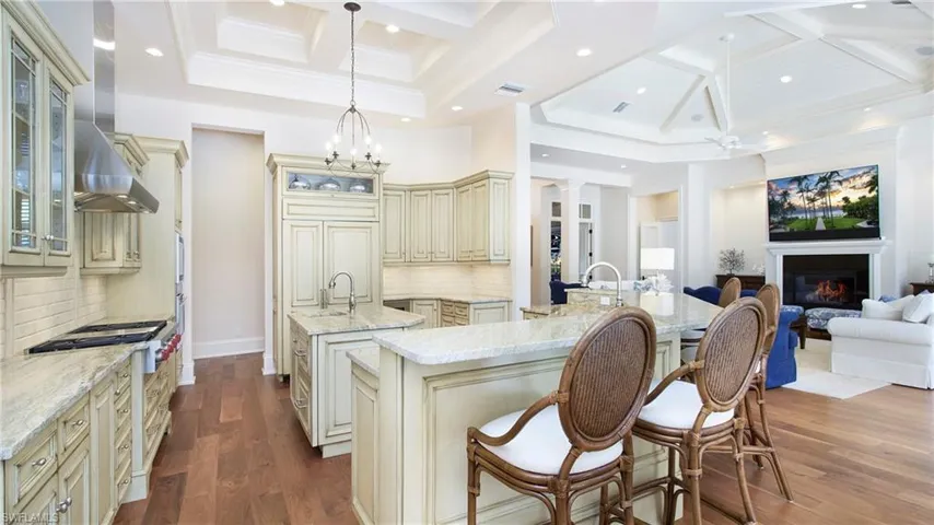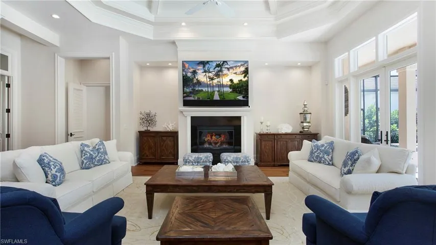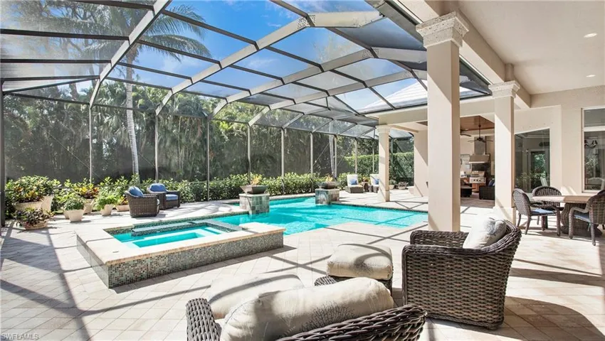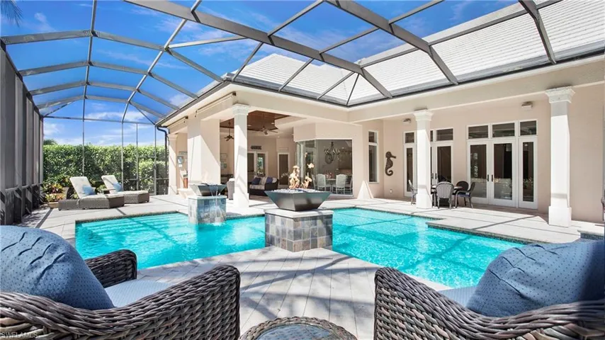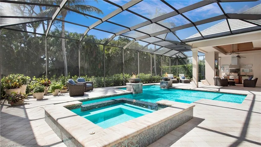 Located in the highly coveted Moorings neighborhood of Naples. Step inside this custom-built residence through the mahogany front doors, and you’ll immediately appreciate the craftsmanship and architectural details that sets this property apart. This spacious residence, 4122 square feet, boasts 4 bedrooms plus den, along with 4.5 elegantly appointed bathrooms. The chef’s kitchen is equipped with top-of-the-line cabinetry, wine cooler, Wolf & Sub Zero appliances. The expansive lanai invites year-round enjoyment with a spectacular pool and spa, accented with dramatic fire and water features, summer kitchen, gas fireplace and Cypress wood ceiling. Set on a private oversized lot, this coastal retreat is mere minutes from the Gulf, offering exclusive private beach membership to Moorings residents. Embrace a lifestyle of elegance and exclusivity at 645 Rudder Road tailored for those who appreciate the finer things in life.