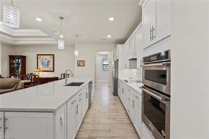 GOLF COURSE VIEW in this highly sought-after STARDOM floor plan in the 55+ Del Webb Naples community – better than new construction and READY NOW with no waiting required. This home is designed for those who love to entertain, offering a spacious gathering room that seamlessly flows into the upgraded GOURMET KITCHEN, complete with an oversized island, stainless steel appliances, walk-in pantry, and BEVERAGE CENTER.