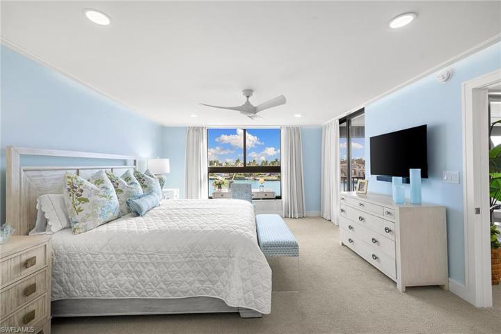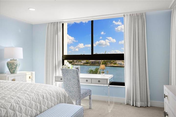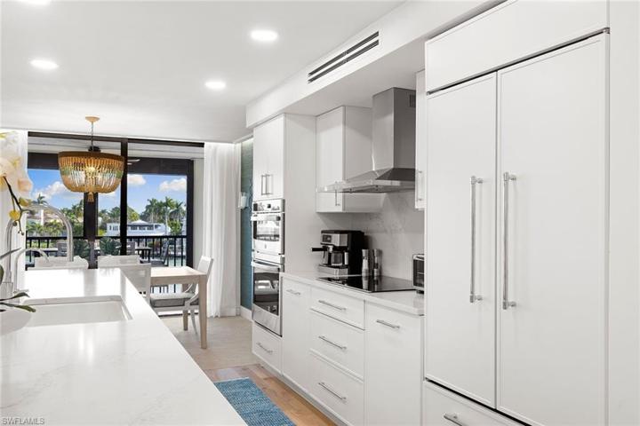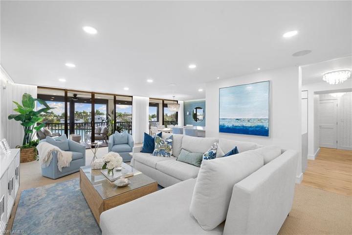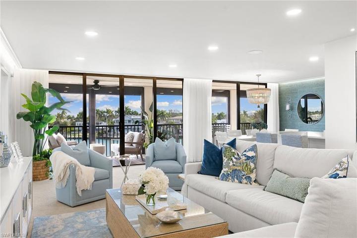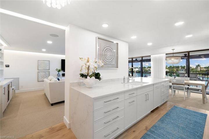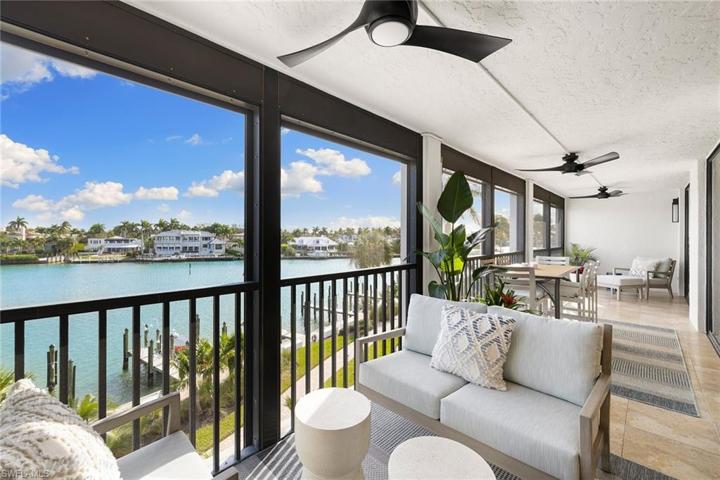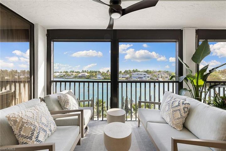 Discover the epitome of coastal luxury in this meticulously designer-renovated two-bedroom, two-bath waterfront condominium in the prestigious Admiralty Point beachfront community. Spanning 1,948 total square feet, the thoughtfully designed interior boasts an open floor plan integrating living, dining and kitchen spaces, exuding a spacious and welcoming ambiance. Crafted for modern living, every detail reflects elegance while offering a harmonious balance of style and comfort. Step on your private bayfront lanai to immerse yourself in the serene water views and watch the dolphins play. Enjoy direct access to the white sand beaches of the Gulf of Mexico or moor your boat in one of the available to-rent boat slips, perfect for beach and boating enthusiasts. Experience resort-style living with Admiralty Point’s exceptional amenities including clubhouses, fitness center, tennis courts, pools, beach access and boat docks. In the highly sought-after Moorings neighborhood of downtown Naples, just minutes to Venetian Village where you can enjoy an array of fine waterfront dining, entertainment, galleries and boutique shopping.