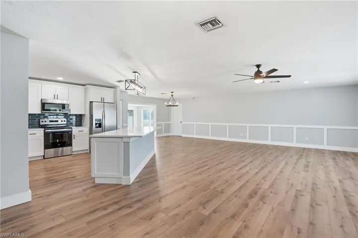 This beautifully remodeled single-family home in Lehigh Acres is completely move-in ready and packed with modern upgrades. Featuring 3 bedrooms and 2 bathrooms, the home offers an open floor plan that feels bright, spacious, and welcoming—perfect for everyday living and entertaining. Brand-new flooring flows throughout, complemented by all-new light fixtures that enhance the home’s clean, contemporary style. The stunning kitchen is a true highlight, showcasing new cabinetry and sleek quartz countertops, with matching quartz surfaces carried into both bathrooms for a cohesive, upscale look. Each bathroom has been fully updated with new tile flooring and beautifully tiled showers, creating a fresh, spa-like feel. Major improvements include a newer 2023 roof, newer A/C system, hurricane impact-resistant windows, and a brand-new garage door, offering peace of mind and long-term value.