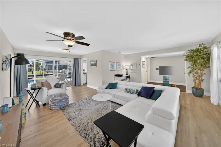 Ultimate boating location with IMMEDIATE DIRECT SAILBOAT ACCESS less than 5 MINUTES to open water. Located on a quiet cul-de-sac street this property one of the most desirable boating locations in SW Cape Coral. The home enjoys SUNNY SOUTHERN EXPOSURE for the HEATED POOL and the spacious lanai creates the perfect setting for relaxing afternoons or entertaining guests. Additionally, there is a convenient pool bath. Inside, the residence has been impeccably maintained and FULLY UPDATED featuring a newer roof and plumbing plus a beautifully REMODELED KITCHEN AND BATHROOMS. With over 1800 ft. living area the home offers 3 bedrooms, 3 FULL BATHS, and a 2 car garage. For serious boaters, the waterfront setup is exceptional, highlighted by a 13,000-POUND BOAT LIFT capable of accommodating larger vessels with ease. Currently operating as a successful vacation rental the property offers immediate income potential while still serving as a fantastic personal retreat. PRICED NEAR LOT VALUE, this is an ideal opportunity: enjoy a move-in-ready waterfront home today, continue the vacation rental income, or as an amazing lot to build your waterfront dream home in one of Cape Coral’s most desirable boating locations.
