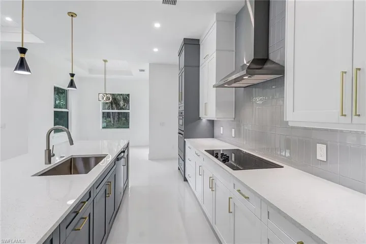 Take a look at this stunning and luxurious MOVE IN READY NEW CONSTRUCTION HOME! All finishes and selections are custom and were meticulously selected by an interior designer overseeing the project alongside the builder from start to finish. This house features 4 bedrooms + a Den, 3 full bathrooms, a two-car garage with plenty of upgrades and custom details like impact windows & doors, concrete tile roof, pavered driveway, custom closets, beautiful satin brass hardware throughout, and so much more! This property sits on 1.59 Acres, 100% upland with plenty of parking space in a quiet street with great neighbors. There are 10-16ft high ceilings.. with custom T&G wood details and coffered ceilings, beautiful wood beams, etc. Kitchen has custom built in cabinets with stainless steel appliances and a spacious island. The cabinetry in outdoor lanai area is custom marine plywood, to ensure durability. Enjoy the bright and open concept with tons of natural lighting all throughout. There was no detail overlooked on this home! This property is situated in a great neighborhood…. schools, parks & commercial plazas all within minutes. A portion of the rear land on this property will be scheduled for Phase 2 of the Vanderbilt Beach Road Extension project… you will get to enjoy the privacy while still being close to main roads! Excellent location! Schedule a showing today. ***Agents see remarks***