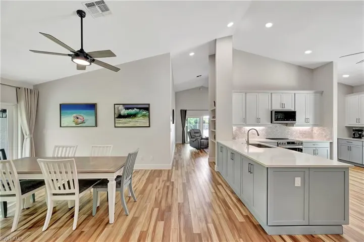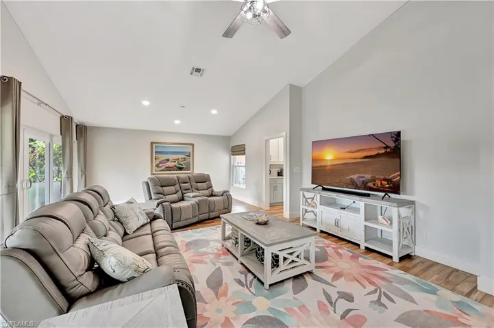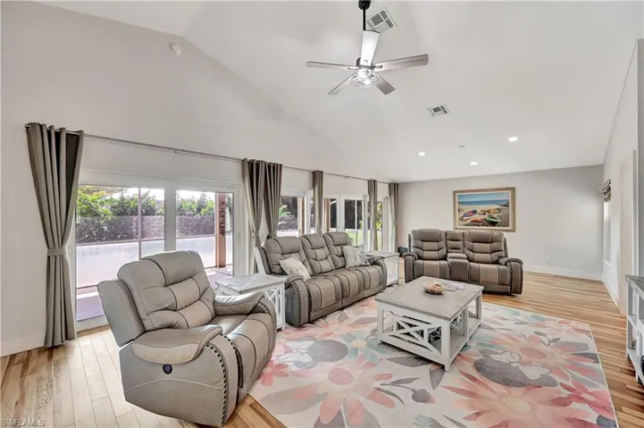 RARELY AVAILABLE, spacious 2,453 sq. ft. (under air) 3 bedroom, 2 1/2 bath home on an OVERSIZED lot in highly coveted River Reach located on the most family friendly, sidewalk lined street in the community. Soaring ceilings, two side sliders (east and west) plus expansive lanai sliding doors offer cool breezes and plenty of light. The large formal dining room can be easily converted to a 4th bedroom or home office, adding to the livable indoor space. All impact windows, newer tile roof and a beautifully updated kitchen and bathrooms are tastefully appointed with gorgeous granite, tile and backsplash. An expansive screened lanai and two side patios add to the outdoor living and a separate concrete pad is perfect for BOAT OR RV STORAGE. Room for a pool on this .30 acre lot but this home is also around the corner from the heated lap pool of Coconut River Estates which may be enjoyed for only $450 per year. Other amenities include a BOAT RAMP, 4 Pickleball Courts, Tennis & Shuffleboard Courts, Playground, Dog Park and Pavilion that may be rented for free for private parties. Participate in year round Activities for ALL AGES and live just minutes away from the Gordon River Greenway, Downtown Naples and white sandy beaches. Experience SWFL’s “best kept secret GULF ACCESS and FAMILY/PET FRIENDLY community”—the Mayberry of sunny Florida!