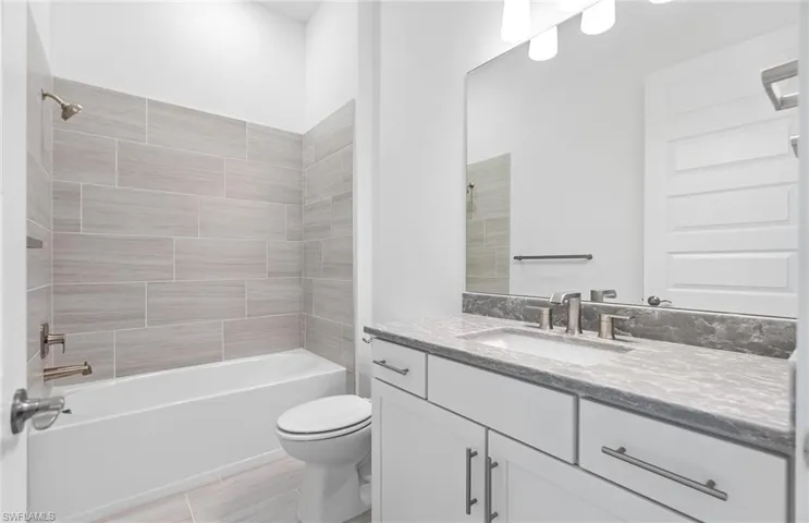 Now available and move-in ready, the newly constructed Highgate floorplan is a beautifully designed 4-bedroom, 2-bathroom single-family home with a 2-car garage, located in the highly desirable master-planned community of Ave Maria. This home offers a spacious layout and thoughtful upgrades throughout, including an oversized garage with epoxy finish, an extended covered lanai for outdoor enjoyment, and a stylish kitchen featuring built-in appliances, a cabinet hood, white cabinetry, and quartz countertops. The owner’s suite is a private retreat with a walk-in shower featuring a built-in seat, heavy glass shower door, and a tiled niche. Additional features include tray ceilings in the gathering room, and a well-equipped laundry room with cabinetry and countertops for added convenience. Located in Ave Maria, one of Southwest Florida’s top-rated master-planned communities, residents enjoy access to scenic pocket parks and proximity to a wide range of recreational amenities. Just 1 mile away, Ave Maria North Park offers sand volleyball courts, soccer and baseball fields, basketball courts, a playground, and picnic pavilions. Less than 2 miles away, South Park features a dog park, softball fields, bocce ball and pickleball courts, and walking/biking trails. Optional membership to the nearby Ave Maria Water Park provides access to a resort-style pool, fitness pool with lap lanes, interactive kid’s pool, and waterslides—enhancing the vibrant lifestyle this home and community offer.
