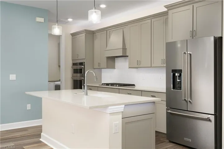 The chef’s kitchen is a standout feature, complete with upgraded KitchenAid appliances, a gas cooktop, sleek cabinetry, and a spacious island that flows seamlessly into the main living and dining areas, perfect for both everyday living and entertaining.
