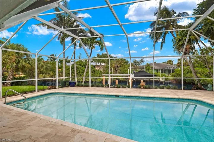 Fabulous newly renovated home! Nearly everything is new in this beautifully designed Gulf access pool home. From the welcoming front entry, views through the home straight to the screened pool and wide canal capture attention while the high ceilings, comfortable layout and beautiful design invite you into the home. Hand crafted custom wood cabinetry, quartz counters, and stainless steel appliances are featured in the open kitchen. Wood grain high quality luxury vinyl tile is throughout the home, creating a coastal backdrop to the space. New electrical, AC, PEX plumbing, hot water recirculating system, pool equipment, landscaping, irrigation controller, flat roof, gutters, lanai screen, boat lift motors and control box, outdoor shower, cabinets, exquisite tile showers, vanities, appliances, furnishings and more make this a like- new property. The pool is in excellent condition and features gorgeous waterline tile. Situated on a wide canal with only one bridge to open water and close to deeded beach access as well as the shops and restaurants of “downtown” and east end Sanibel, the location is ideal for all aspects of island life. A canal-side patio adds to the enjoyment of this fabulous Gulf access home. Sold turnkey, it is ready to be enjoyed. Make your appointment to see this property today before this amazing opportunity is gone! NO HELENE OR MILTON WATER INTRUSION!