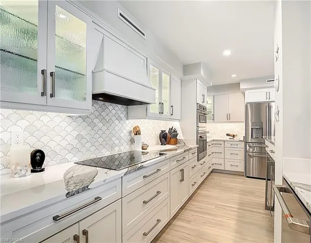 Coastal Elegance & Captivating Gulf View Residence in this Exquisite Rare Beachfront Architectural Redesigned 2 Bedroom… Plus a Guest Suite/Den/Study and an Exclusive Separate Offering of a Private Beach Cabana with bath! Spacious 10th-floor Living gives way to Unparalleled Views of the Gulf! This Residence features a complete Architectural Renovation & Design! The Custom Kitchen; that is sure to please the most discriminating of Chefs is complete with GE Cafe Stainless Double Built in Wall & Convection Ovens, GE Cafe Refrigerator, Hisense Stainless Wine & Beverage Refrigerators, GE Cafe Induction Built in Glass Stove Top, Exquisite Cambria designed counter height lunch/breakfast bar, Cambria High Top Bar, a Coffee/Tea/Wine service area… ‘Coastal’ Designed Custom Cabinetry & full ‘Scalloped’ designed Marble Backsplash… ‘la cucina è bella’. From the spacious Redesigned Foyer, Living, Main Bedroom, Guest Rooms, Baths, Private Cabana; to the Custom Shades and Shutters, Custom Built in Closets, Custom Woodwork, Redesigned Ceiling & Lighting, Custom Foyer, Guest Hall, Laundry Room with GE Profile Front Load Washer/Dryer, New Impact Insulated Windows & Sliding Doors, New HVAC unit in Residence & Rooftop, Sound Insulation Installed in all Interior and Exterior Walls, Electric Shutter Protection & Under Building Private Parking & Private Storage Locker… the list goes on & on! Imagine your day sipping morning coffee & watching the Pelicans glide by. Stroll along the beach while the Dolphins Play along the water’s edge; maybe take in Tennis and Swim in the Pool. Enjoy Miles of White Sandy Beaches and the Blue-Green Waters of the Gulf just outside your door. Residents enjoy a gated community with 750+ feet of direct beach frontage, the largest heated salt water swimming pool on Vanderbilt, 2 guest suites, 2 tennis courts, Tesla charging, BBQ grills & an exercise facility that overlooks 8+acres of tropical landscaped areas. With a full time on-site staff, attended lobby and secure gated entrance… this is Living the Life at Vanderbilt Gulfside! Explore Naples for shopping on 5th Ave, dinner on 3rd or a performance at the Naples Philharmonic. A short drive to the north and you are exploring the Historic islands of Sanibel, Fort Myers Beach, or Hickory (Bonita) Island and savor all the local offerings. Relax and listen to the Surf, watch the Sunset Colors light the Evening Sky… this is Coastal Living at its Finest. You’ll Love Coming Home
