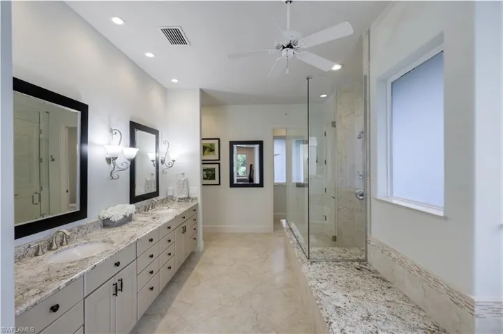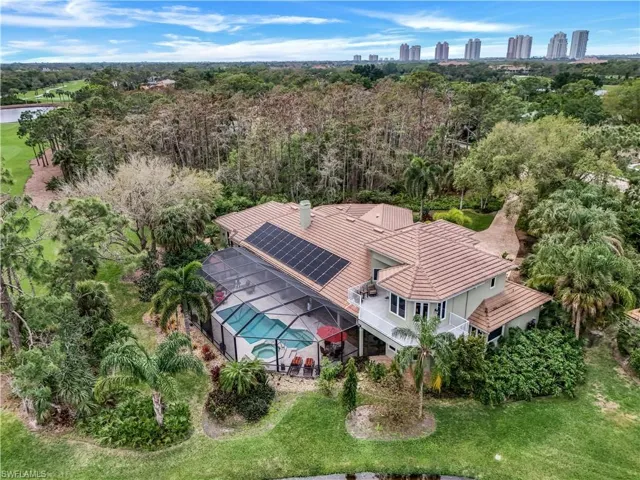Welcome to your dream home in Pelican Landing! This fully renovated 7-bedroom (6 ensuite), 5-full bath, 2-half bath estate is perfectly situated on over 1.5 acres, boasting breathtaking views of a serene lake and lush golf course greens. A stately yet welcoming home offering space and privacy for your large family. The primary bedroom is conveniently located on the first floor offering a quiet sanctuary off the formal living area. A separate guest wing holds four private first floor ensuite guest rooms and a fifth bedroom/office. An additional guest ensuite can be found upstairs with a wraparound veranda overlooking the enchanting views. Prepare to be captivated by the seamless blend of indoor and outdoor living spaces, where double glass French doors beckon you to explore the expansive grounds. Host a special event outdoors, take advantage of the newly renovated outdoor kitchen, or simply unwind amidst nature’s splendor from the charming gazebo. Entertain with ease in the elegant gourmet kitchen, featuring granite counters, custom wood soft-close cabinetry, and new top-of-the-line appliances including a 48” Gas cooktop, Wolf double oven, two new refrigerators. The great room with electric inset fireplace and built-in wet bar provides the perfect setting for cozy gatherings or an evening of entertaining. Newly remodeled saltwater pool and spa, and a newer screen enclosure, allow you to bask in the sun or unwind in the shade at your leisure. Peace of mind is always at hand with hurricane impact windows and doors, underground outdoor lighting, and a whole-house generator and security system. This home boasts an array of recent upgrades, including new blown-in insulation, solar panels, four new AC units, and two new hot water heaters. The remodeled upstairs bath, luxury vinyl waterproof flooring, Butler’s pantry and all-new appliances further enhance the appeal of this exquisite property. With panoramic views and an abundance of wildlife to entertain, every day is a celebration of luxury and tranquility. Don’t miss your chance to experience the ultimate lifestyle in SWFL. A truly unique property in a highly sought after neighborhood. Pelican Landing is a highly desirable master-planned community offering over 2400 acres of beautiful preserve land to be enjoyed through the many walking and biking trails, and kayak and canoe parks. Impressive amenities include a community center with expansive fitness facility, social events, private beach club on exclusive island with resident boat shuttle, marina with boats slips, sailing center with a fleet of complementary Hobie Cat sailboats to access at your leisure, professionally attended tennis center with 12 Har-Tru tennis courts and 6 pickleball courts, bocci ball, butterfly garden, and numerous parks to enjoy. Everything included in master HOA fee except Golf or Social Memberships to The Nest. Schedule your private tour today and discover the endless possibilities awaiting you at this exceptional address.