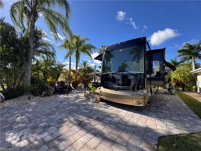 Lot 314, completed with exquisite pavers in 2024, exudes sophisticated curb appeal from every angle. Impeccably landscaped with lush tropical plants, this property is designed for those who love to spend time outdoors in style. Enjoy a serene shaded seating area at the front, perfect for relaxing mornings, or soak up the sun on the back lanai, complete with ample space for lounging and gourmet outdoor cooking. The coach house is meticulously maintained and immediately welcoming. Inside, you’ll find a well-appointed kitchenette with a high-end refrigerator and small dishwasher, a bathroom with a shower, a functional gourmet food prep area, and space for a chic mini bar or elegant coffee nook. Thoughtful touches include custom storage bins to keep outdoor gear organized, pavers surrounding the charming coach house, a large stylish awning, and pristine glass doors with privacy blinds. At the back, the property borders a peaceful common area, perfect for fur babies to roam freely. Location-wise, it’s unbeatable: a short stroll brings you to the luxurious River Clubhouse, resort-style pool, pickleball courts, and dog park. Beyond your private haven lies the full RiverBend experience. The Caloosahatchee River flows serenely along the resort, ideal for morning walks, sunset views, and watching boats drift by. RiverBend offers expansive, first-class amenities, from the sparkling pool with loungers and shaded umbrellas to bubbling hot tubs. The River Clubhouse provides a vibrant social scene with live music, trivia nights, holiday parties, themed dinners, and spaces for billiards, reading, and relaxation. Stay active with pickleball, bocce, Zumba, line dancing, or join one of the many clubs, from the Creations Guild to remote control boating and racing. Even your pets enjoy their own well-appointed space at the meticulously maintained dog park. When cooking isn’t on the agenda, the resort often serves delightful refreshments, breakfast, and dinner at the clubhouse. This exceptional lot perfectly blends beauty, convenience, and sophisticated luxury Class A motorcoach living, the ultimate RiverBend lifestyle. Outdoor furniture is negotiable for the discerning buyer.
