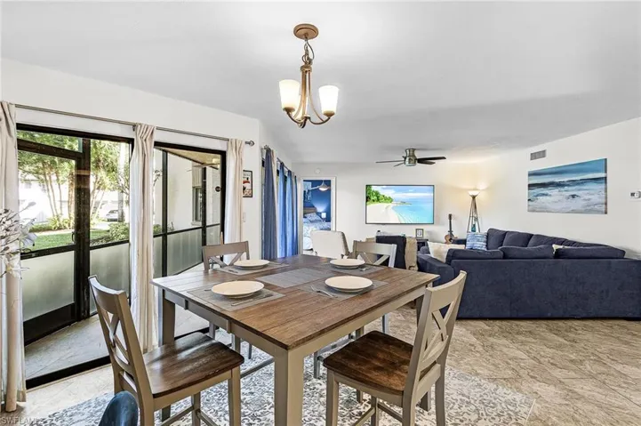 Amazing deal in Fiddlesticks Country Club! This beautifully maintained first-floor condo in The Highlands offers 2 bedrooms, 2 bathrooms, and 1,120 sq ft of comfortable living space, and is offered fully furnished. It features new flooring throughout with elegant 5-inch baseboards, an updated kitchen with upgraded cabinetry and granite countertops, and modernized bathrooms. The master bath includes an enlarged walk-in shower with a tiled bench and built-in cove.