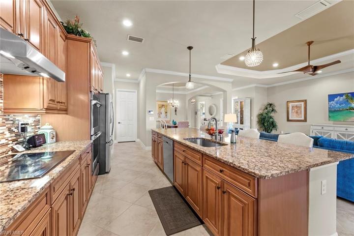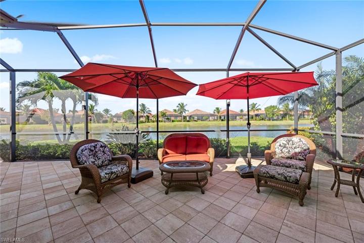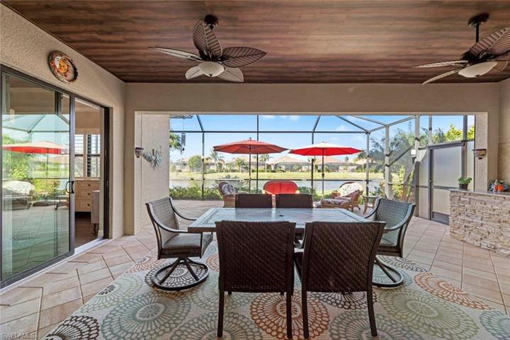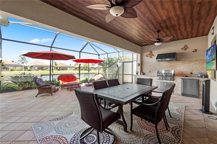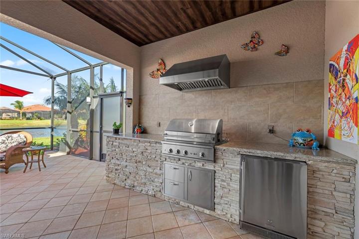 Motivated seller has just reduced price! The epitome of modern ease and elegance, this immaculate waterfront home is located in the desirable community of Bonita National Golf and Country Club. The spacious, open floorplan flows from the entry into a great-room style kitchen (an absolute chef’s dream with upgraded appliances, induction cooktop, 56-bottle wine fridge, and double wall ovens), dining, and living area for the ultimate in entertaining delight. Diagonally-laid tile, crown molding throughout, a split floorplan for privacy, and custom closets – no expense has been spared to ensure this is a haven of comfort. Enjoy sunset views over the lake from the extended outdoor lanai, feed a crowd from the fully-appointed outdoor kitchen, or just relax, secure behind the electric hurricane screens that enclose the lanai so you don’t even have to bring your furniture inside! All protected with a fully transferrable home warranty, and nestled within resort-style Bonita National – where you’ll find a full fitness center, full-service spa and sauna, lagoon-style pool with waterfall, lap lanes, and poolside cabanas, fine dining at the gorgeous clubhouse, or informal fare at the bar/grille.