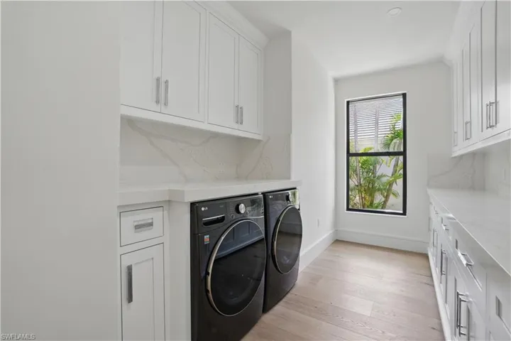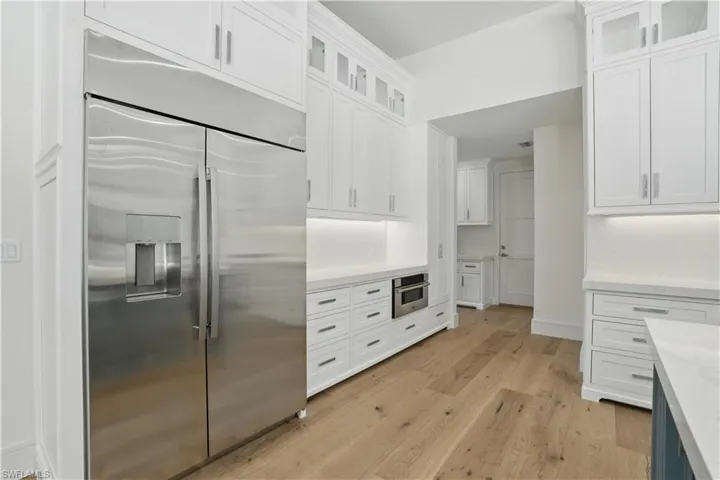 Completely Rebuilt Modern Home in a Prime Cul-de-Sac Location — and in an X flood zone, so no flood insurance is required! 24721 Bay Bean Ct in Pelican Landing is a beautifully reimagined 4 Bed + Den, 3.5 Bath residence that offers the feel of brand-new construction at a fraction of the cost. Taken down to the foundation and completely rebuilt, this 3,424 sqft home features all-new electrical, plumbing, impact windows, roof, cabinetry, flooring, and more. At the heart of the home is a stunning custom kitchen with extensive cabinetry, a large quartz island, 48-inch gas range, and new appliances, all flowing seamlessly into light-filled living and dining spaces. Designed with privacy and comfort in mind, the layout places the primary suite and den on one side of the home, with three additional bedrooms on the other. A spacious laundry room and mudroom off the garage, along with a well-placed powder bath, enhance the home’s everyday functionality. Large sliding doors lead out to a screened lanai with a heated pool and spa, a raised patio, and plenty of space to add an outdoor kitchen or firepit — all overlooking a private preserve with no rear neighbors and only one neighbor to the side. The adjacent lot is protected and cannot be built on, adding to the unmatched privacy. Additional highlights include 10.5-inch wide French white oak flooring, custom built-in closet systems, an oversized two-car garage with A/C and an insulated attic, dual tankless water heaters and air conditioning systems (including a separate unit for the primary suite), and propane gas throughout the home. Located in a gated, family-friendly community with low HOA fees, residents enjoy access to golf, tennis, pickleball, a state-of-the-art fitness center, marina, kayak park, and more. This home is the perfect blend of luxury, privacy, and lifestyle — truly move-in ready and one of a kind.