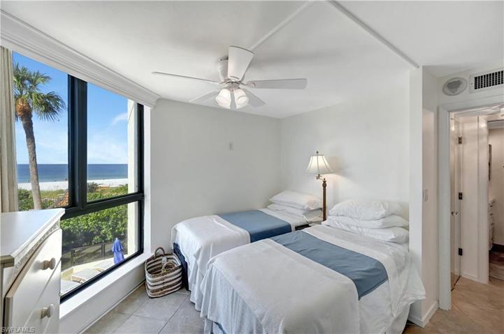 First floor location is actually second floor and the views of the gulf are unobstructed! You can see the sparkling waters of the Gulf of Mexico from this sunny south side location from both your bed and the living room. Super convenient with no need to take the elevator up and down to pool and beach. This 2 bedroom condo has impact sliders and windows and new AC so the big expenses are done and you can invest in personalizing the interior as you wish. White kitchen, hard surface counters, tile flooring and new window treatments. The guest bath has been recently remodeled and has a nice coastal feel. Enjoy the convenience of both in condo washer and dryer and also air conditioned storage. Sandcastle is a luxury building with good reserves and great amenities.