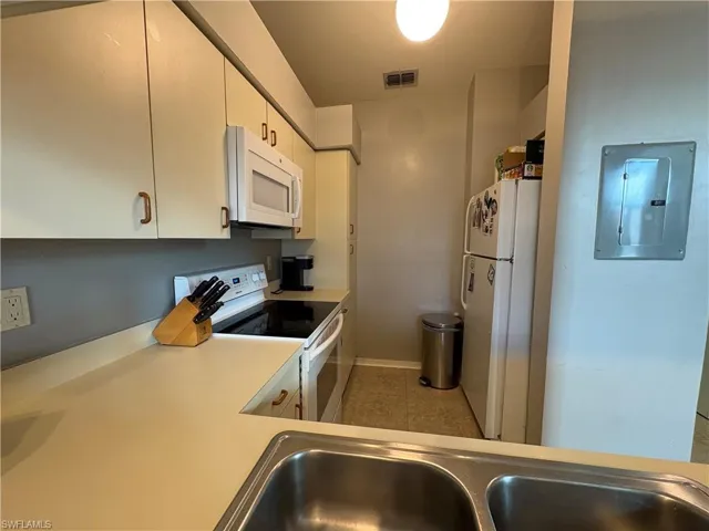 Second floor and corner unit UNFURNISHED at after sought Brookshire Village, a well established neighborhood!! Available May 1st, this unit offers vaulted ceilings, 2 bedrooms, 2 full bathrooms, living/dining area; kitchen includes white line appliances with pass through window and breakfast counter. Tiled throughout except for carpet in both bedrooms. The main bedroom is very spacious and offers oversized walk-in closet, the guest bedroom is also very ample and comfortable, guest bathroom has shower/tub combo, inside laundry off screened balcony which overlooks a nice courtyard. Surrounded by lush gardens and green areas, you will also enjoy the community pool, clubhouse, tennis, pickleball, bocce and more! This community is centrally located with easy access to many grocery stores and restaurants, within 1 .2 miles to Hammond Stadium and Gulf Coast Hospital and 8 miles to SWFL International Airport. BASIC CABLE AND WATER/SEWER SERVICES INCLUDED!