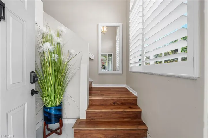 Experience paradise living at its best in this impeccably remodeled 2-bedroom, 2 bath condo in this highly sought after North Naples gated community of Pipers Grove. This move-in ready home is ideal for those who are looking for an easy lifestyle with low maintenance and high end finishes. Countless upgrades create a serene oasis you’ll love to call home. Step inside to discover natural light pouring into the open floor plan, highlighting the elegance of new porcelain 24” x 24” tile flooring in the entry, kitchen and baths with manufactured hardwood throughout the remainder of the home. The eat-in kitchen boasts all new SS appliances, quartz countertops, lovely backsplash, new lighting & fixtures, with plenty of cabinet space, pantry and breakfast bar. The primary suite is a peaceful inviting retreat with walk-in closets and a view of the lake. The newly updated en-suite includes new shower, dual sinks & quartz countertops. Your guests will feel welcome in their private suite including an updated tastefully designed guest bath. The entire home was painted within the last year. Plantation Shutters throughout, soaring ceilings, A/C & water heater 3 years young plus all new ceiling fans & lighting. Relax with your morning coffee and enjoy sunrises on the east facing private screened lanai overlooking the serene lake with water feature. Pipers Grove offers a host of amenities, including a renovated clubhouse and kitchen, 3 community pools, lap pool, bocce, tennis, fitness center, and over 2 miles of walking paths, all within a gated and secure community. This is the perfect location!! Near beaches, dining, premier shopping destinations, Mercato, Famous downtown Naples Fifth Avenue and RSW International Airport. Don’t miss this opportunity to own this outstanding property in this active and friendly community!