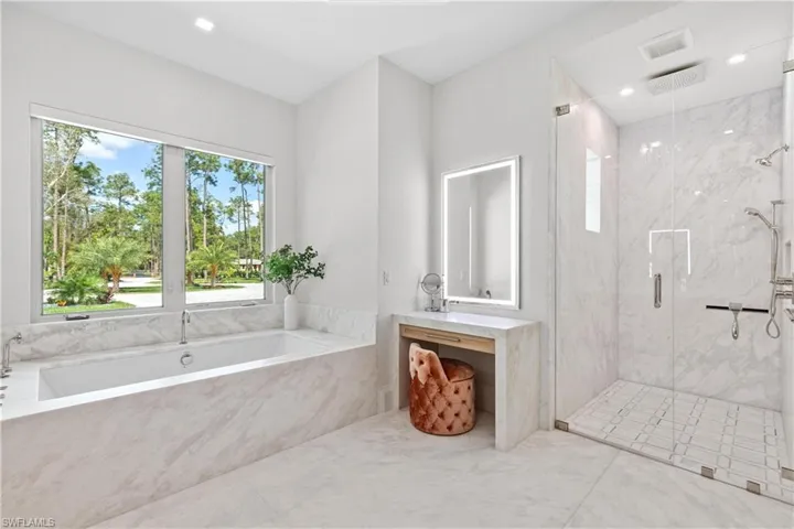 TIMELESS LUXURY AND ELEGANCE! No expense has been spared with this home’s quality and finishes and it exudes extraordinary design. This single story custom construction home includes a metal roof and gutters, triple windows with transoms, spray foam insulation, solid core 8 foot interior doors, a 500 gallon propane tank and generator hookup. This home is meant to be enjoyed – both indoors and out! Built in 2023 on 2.73 acres, this spacious 4 bed + large den/5 bath 3,950 sqft home has numerous exquisite features and custom details such as the beautiful and warm Duchateu European Oak engineered flooring, Sonos speaker system and a safe room. The open-concept kitchen with Cristallo Extra Quartzite countertops backlit with LED lighting, high-end Miele appliances including a Coffee System, steam oven, wall oven, built-in dishwasher, Monogram cooktop, Sub Zero refrigerator, and custom cabinetry from New Style cabinets. Living room is accented by Cristallo Extra Quartzite slabs with full LED light panels behind the 85″ Samsung “The Frame” TV with Sonos sound bar system, custom made TV cabinet. Formal dining room is accented by custom made table, and is situated overlooking the pool. Dry bar with backlit Cristallo Extra Quartzite features a Zephyr wine cooler with custom panel and color changing LED control. Spacious, private owner’s suite on one side of the home with a seating area and doors leading out to the lanai and pool area, soaring ceilings, huge windows for natural light, and a Fort Knox safe door on the walk-in closet. Owner’s private bath has plain sawn walnut cabinets, Mystery White Leathered Marble slabs for the flooring, vanities and shower. Shower walls are backlit with color changing LED lighting, a Baril shower system with 3-spray shower bar, shower head with 3-way controls, and a ceiling shower head. Oversized nature deck mount tub. Two additional bathrooms feature porcelain slab flooring and walls with no seams, Kallista sinks, Fantini and Foster faucets and wall-hung toilets. Powder bath has stunning precious stone natural agate flooring and custom sink backlit with LED lighting, custom wallpaper and wall-hung toilet. Pool bath has porcelain flooring, Cristallo Uzul Quartzite on the back wall, Lacava vanity and faucet, and wall-hung toilet. Outdoor living was just as thoughtfully designed with an in-ground pool/spa, screened lanai and a fully equipped outdoor kitchen with Naturkast outdoor cabinets and porcelain mitered countertops, 42″ propane grill, stainless steel range hood and appliances; and a separate seating area with Napoleon fireplace and “Sony 75” TV with Sonos sound bar. Lot is fully cleared and fenced with a custom gate. Additional 1,950 sqft metal building has electricity and can be used as a workshop, garage, or extra storage. A fire pit patio area with seating extends your outdoor enjoyment. Landscaping is enhanced by approx. 12,000 sqft circular paver driveway, fruit trees, shrubbery and custom landscape lighting.